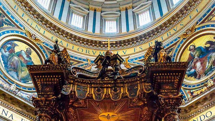 - El imponente Baldaquino de Bernini, una obra monumental que se eleva sobre la tumba de San Pedro.