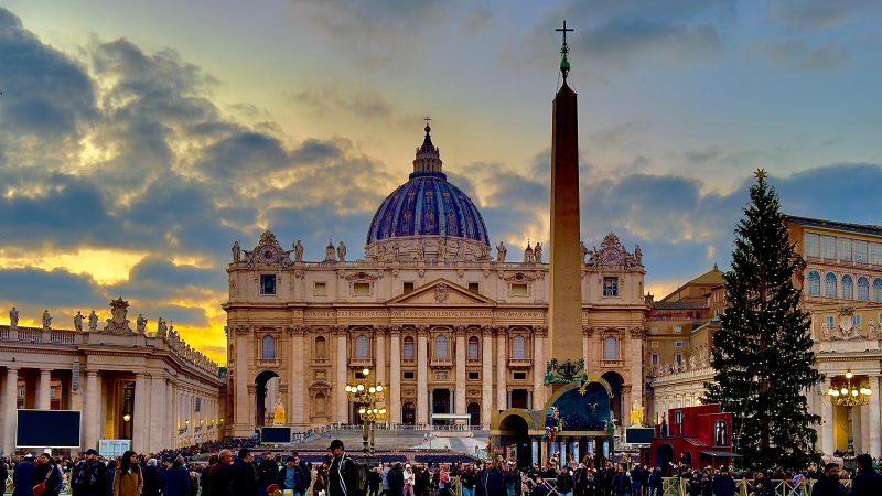 La Plaza de San Pedro, rodeada por el imponente columnato de Bernini, alberga el antiguo Obelisco Egipcio, un símbolo de la grandeza de la Iglesia. 😊